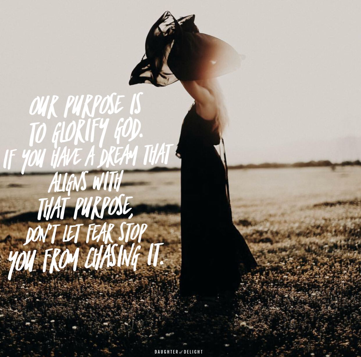 Our purpose here is to glorify Him, and if you have a dream that aligns with that purpose, don't let fear stop you from chasing it. Prayerfully pursue the dream, keep your focus on Who you are doing it for and watch what God will do. His glory shines the brightest through the vessels of the weakest and most humble. If you believe you have a gift from God that can be used to advance His Kingdom, don't rob God of the joy of using that!