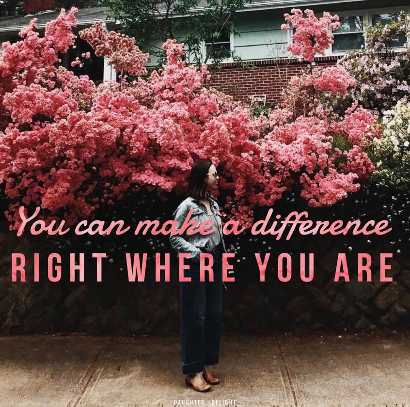 We don’t have to have it all together or do big, glamorous things for the whole world to see. You throw a rock into the water right where you are. You can make a difference for one person, in one small way. You never know how much that one thing you do could change the course of a life. The smallest ways we touch people’s stories end up making the biggest difference in their lives.